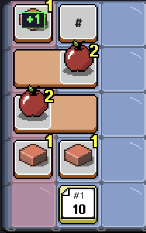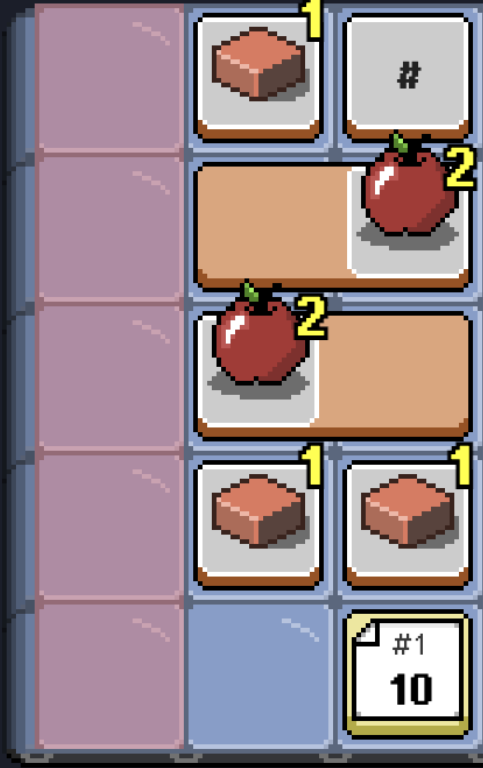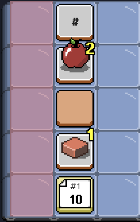 Place food tiles on a shifting grid. Every turn, the belt moves left. Tiles that reach the edge are consumed for points. But an order ticket is coming, and if you haven't hit the target, you take damage.